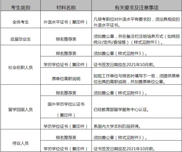 考生须在系统相应位置提交《自述》,有国(境)外留学经历人员还须提交《在国(境)外留学期间的情况说明》(有关要求及范例见附件2)。考生须提交报名推荐表(样式见附件3),根据表格要求由相关负责人签字并加盖公章后扫描上传,原件需在面试候考时提交。请如实撰写上述材料,如发现提供虚假信息或隐瞒有关情况,将被取消录用资格。