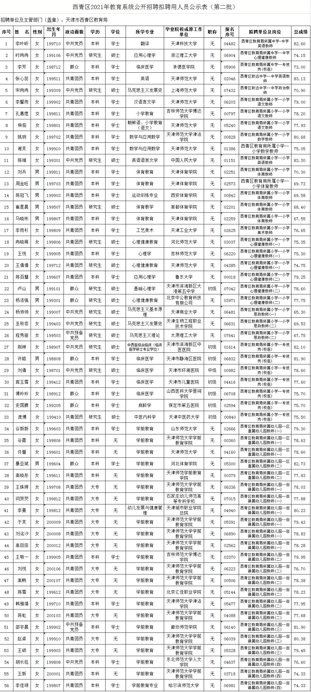 附件:西青区2021年教育系统公开招聘工作人员公示表(第二批)