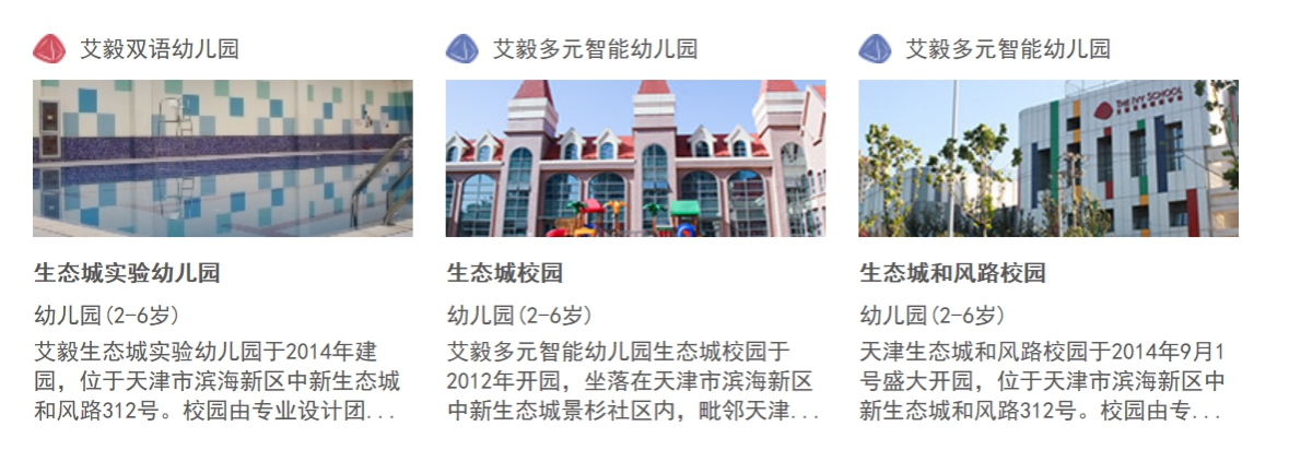艾毅教育集团成立于2003年,目前在北京、天津、西安、成都和宁波五大城市有超过17所幼儿园和双语学校。