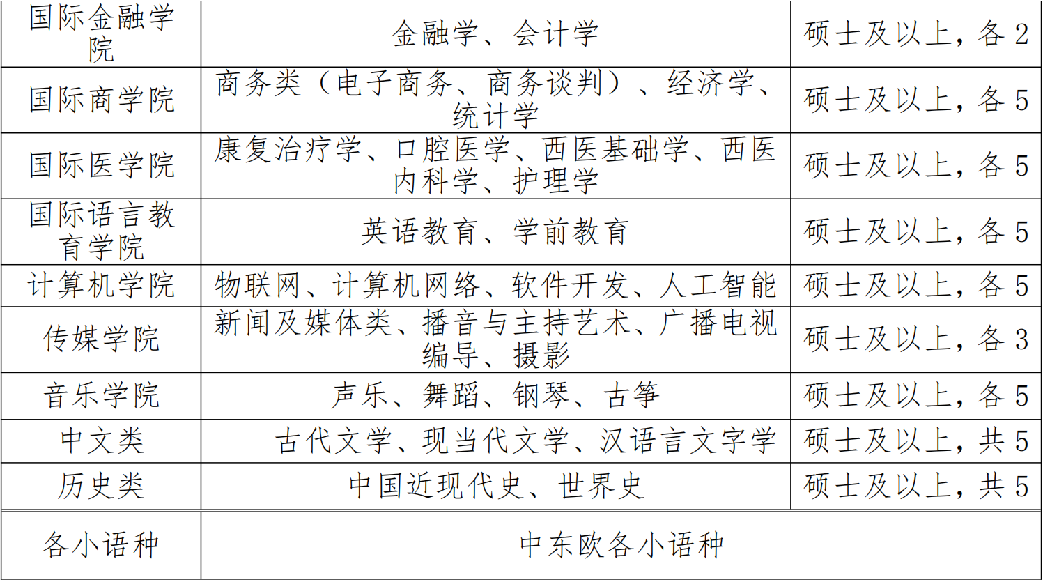 河北外国语学院作为河北省唯一一所独立建制的本科外国语大学。目前,河北外国语学院已与世界 82 个国家的 325 所大学开展着校际间本、硕、博层次合作,71 个语种覆盖欧洲、亚洲、非洲、大洋洲、南北美洲主要国家,语种数量位居全国高校第二位。136 个本专科专业涉及传媒、计算机、金融、建筑、商务商贸、教育、医护、交通旅游、艺术表演及外国文学十大领域。 河北外国语学院是国家5A 级民办高校,是教育部重点支持的 26 所民办本科高校之一,是国家援非工作的外语人才供应基地,是河北省人民政府批准的 10 所应用型重点本科试点高校,是省委省政府授予的“河北省招才引智十佳单位”。河北外国语学院为年轻教师打造了发展的平台,非常适合有志青年事业发展。为满足我校教学、科研工作需要,加快师资队伍建设步伐,我校 2020 年拟引进一批硕士毕业生,具体要求如下: