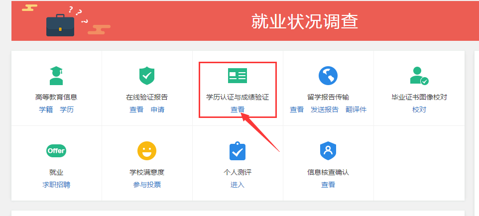 登陆自己的学信账号后,弹出个人首页我们看到学历与成绩认证的部分查看和绑定;我们进行点击查看,进行点击要进行申请学历报告页面。 -