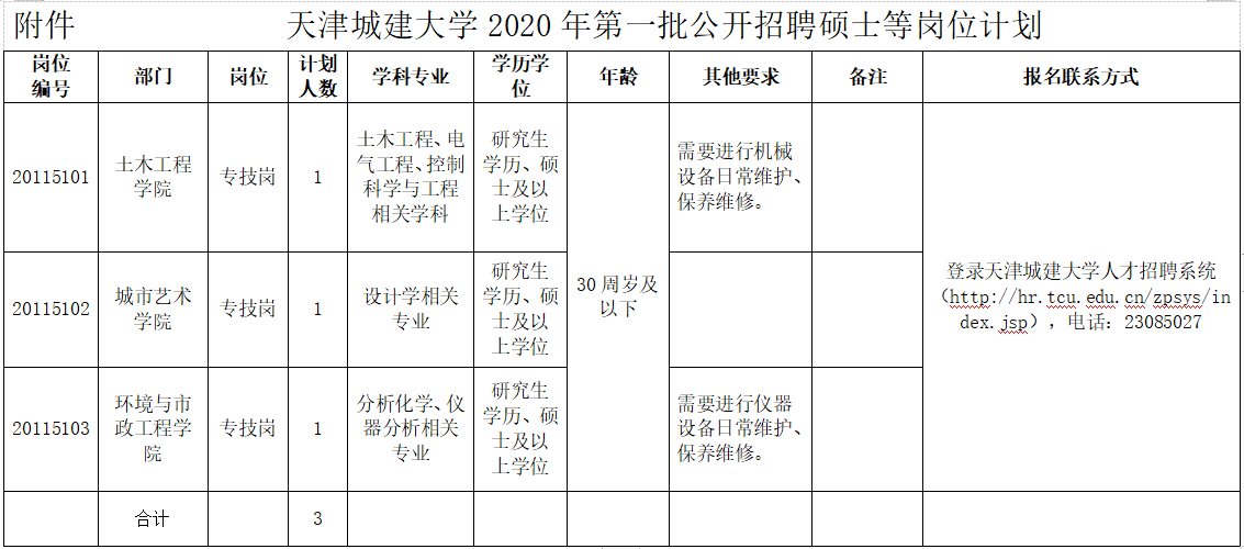 附件:天津城建大学2020年第一批公开招聘硕士等岗位计划