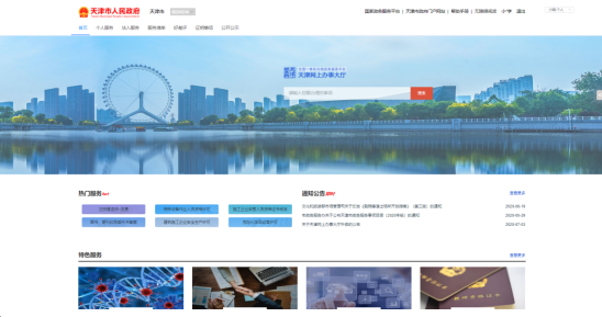 四、登录成功后进入天津网上办事大厅首页