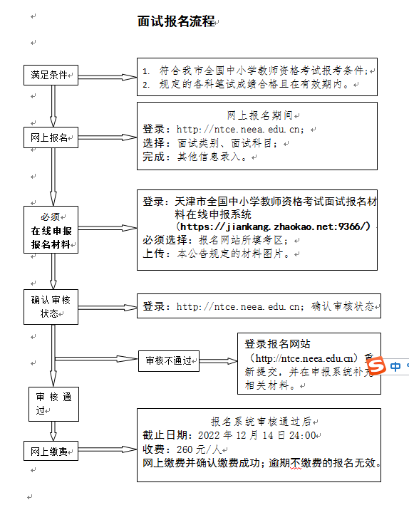 (三)网上缴费。网上审核通过后,考生务必在规定时间内进行网上缴费,并确认缴费成功。根据津发改价费〔2016〕712号文件规定,我市全国中小学教师资格考试面试收费标准为:260元/每人。考生在网上缴费成功即视为本次考试报名完成。