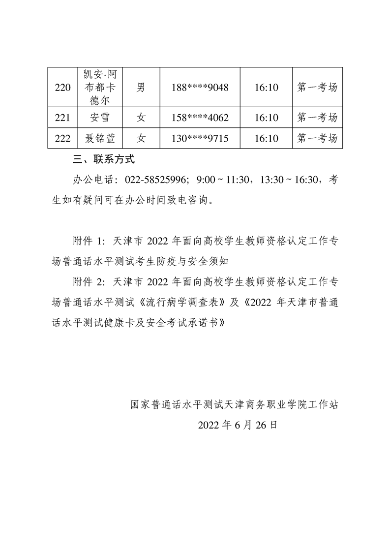 天津市2022年面向高校学生教师资格认定工作专场普通话水平测试考生须知及考生名单