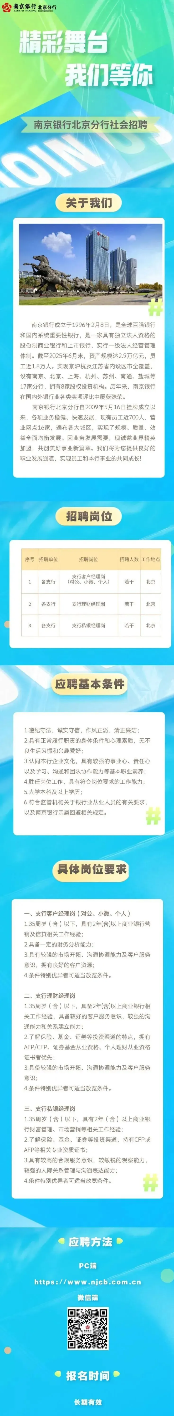 南京银行北京分行社会招聘