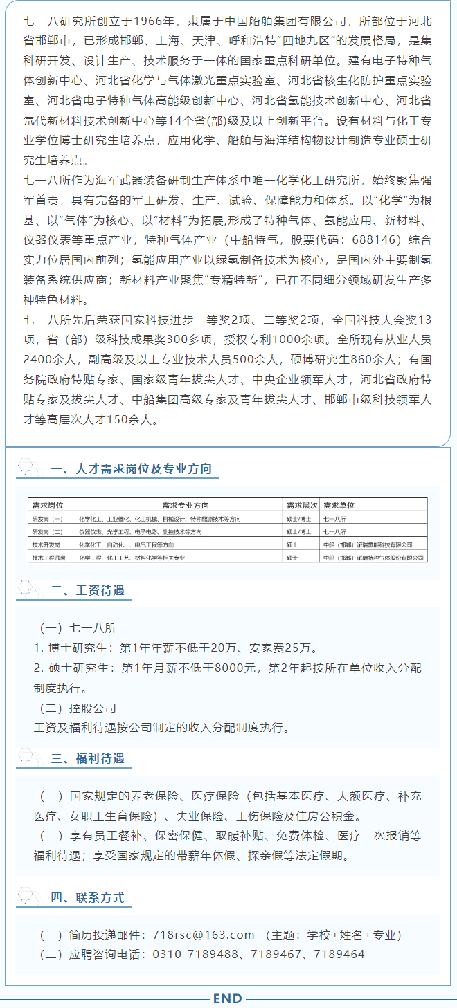 中国船舶集团有限公司第七一八研究所2026届校园招聘