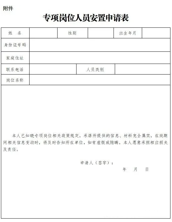 (6)专项岗位人员安置申请表:附件(本人签字)。