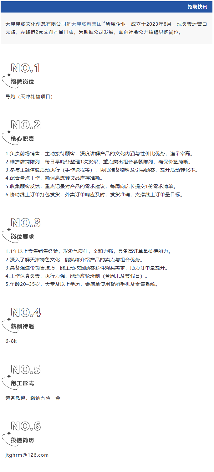 天津津旅文化创意有限公司招聘