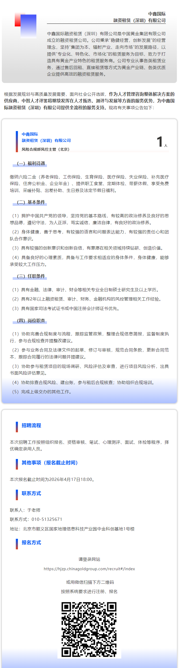 中鑫国际融资租赁有限公司2026年度招聘公告