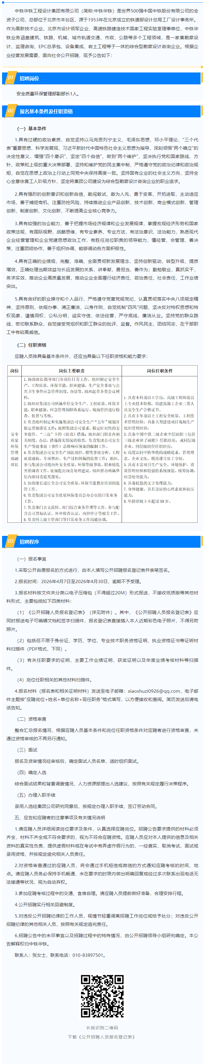 中铁华铁工程设计集团有限公司区域指挥部招聘公告