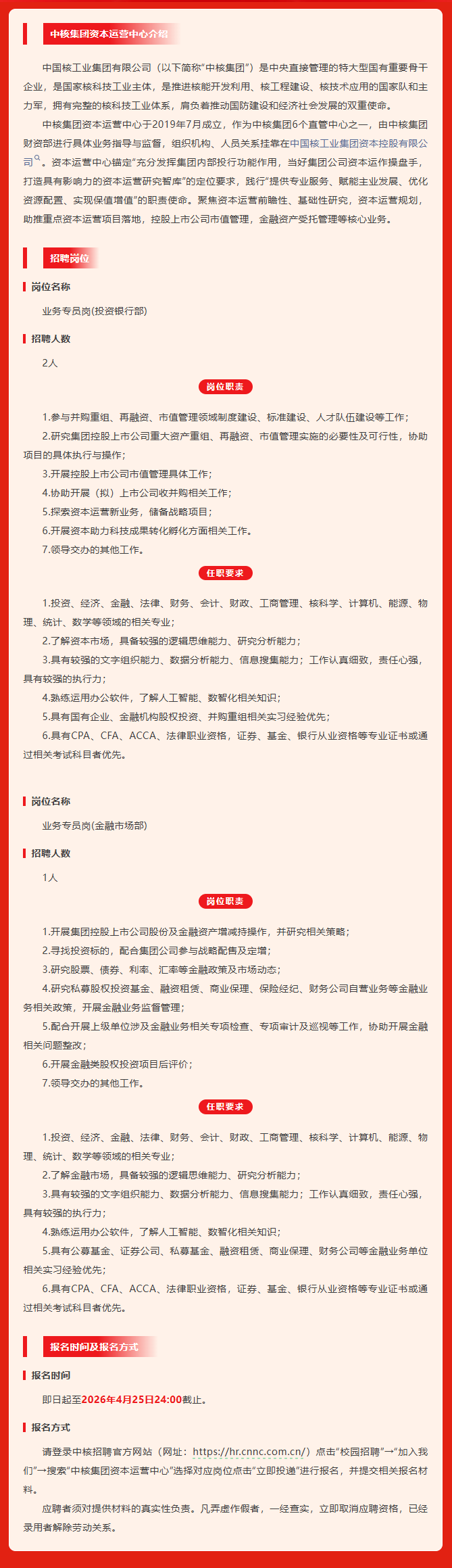 中核集团资本运营中心2026年校园招聘公告