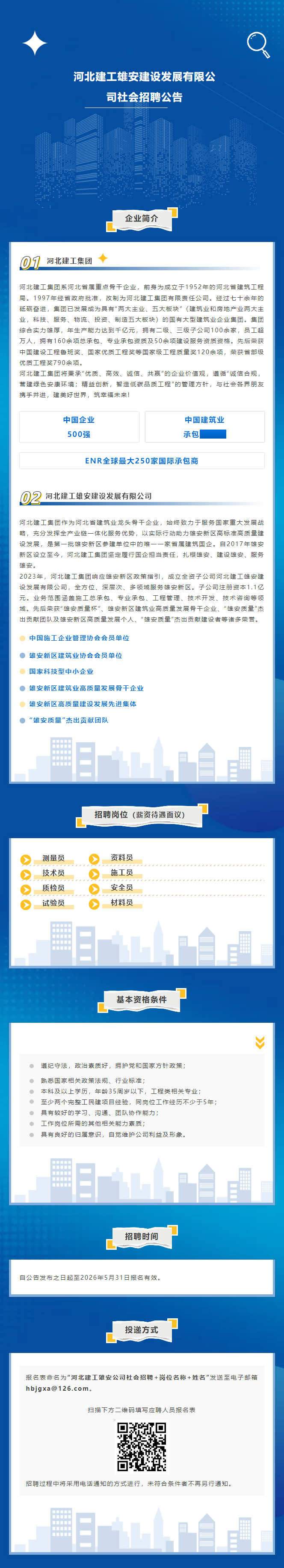 河北建工雄安建设发展有限公司社会招聘公告