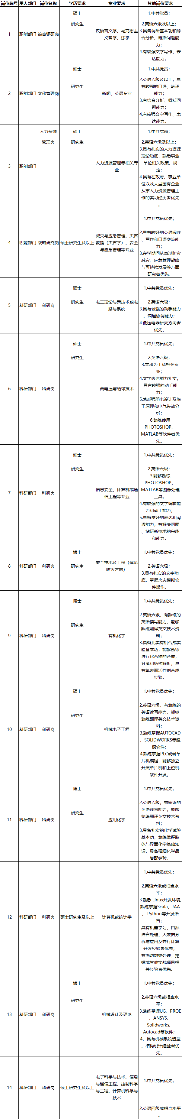 应急管理部天津消防研究所2020年应届高校毕业生招聘启事