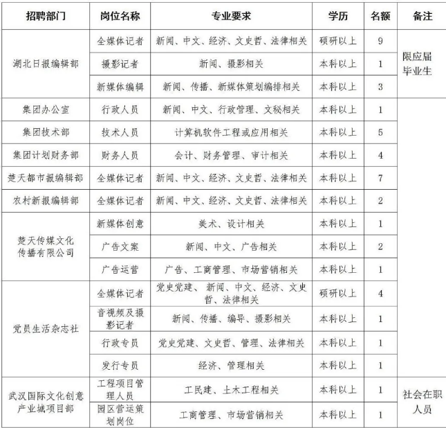 ·社会在职人员须具有两年以上相关工作经历,年龄原则上不超过35周岁(武汉国际文化创意产业城项目部岗位须具有五年以上相关工作经历, 工程项目管理人员年龄原则上不超过40周岁)。