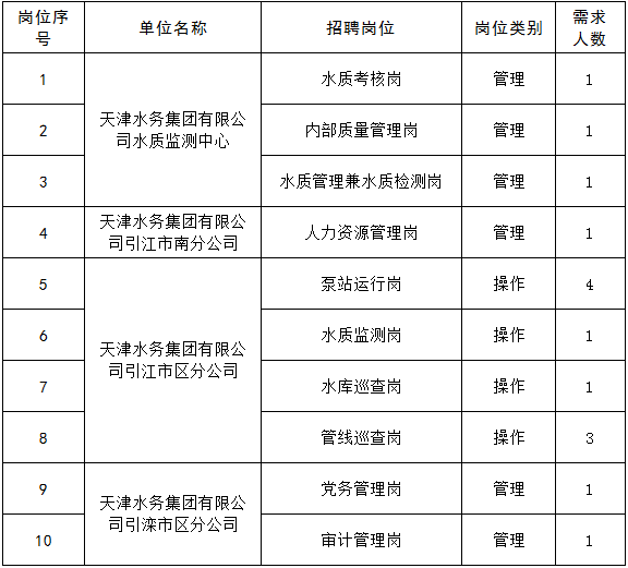 1. 2020年度天津水务集团所属单位招聘岗位条件