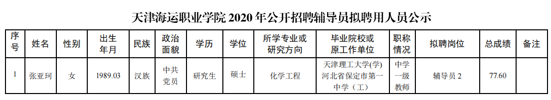 天津海运职业学院公开招聘拟聘用人员公示