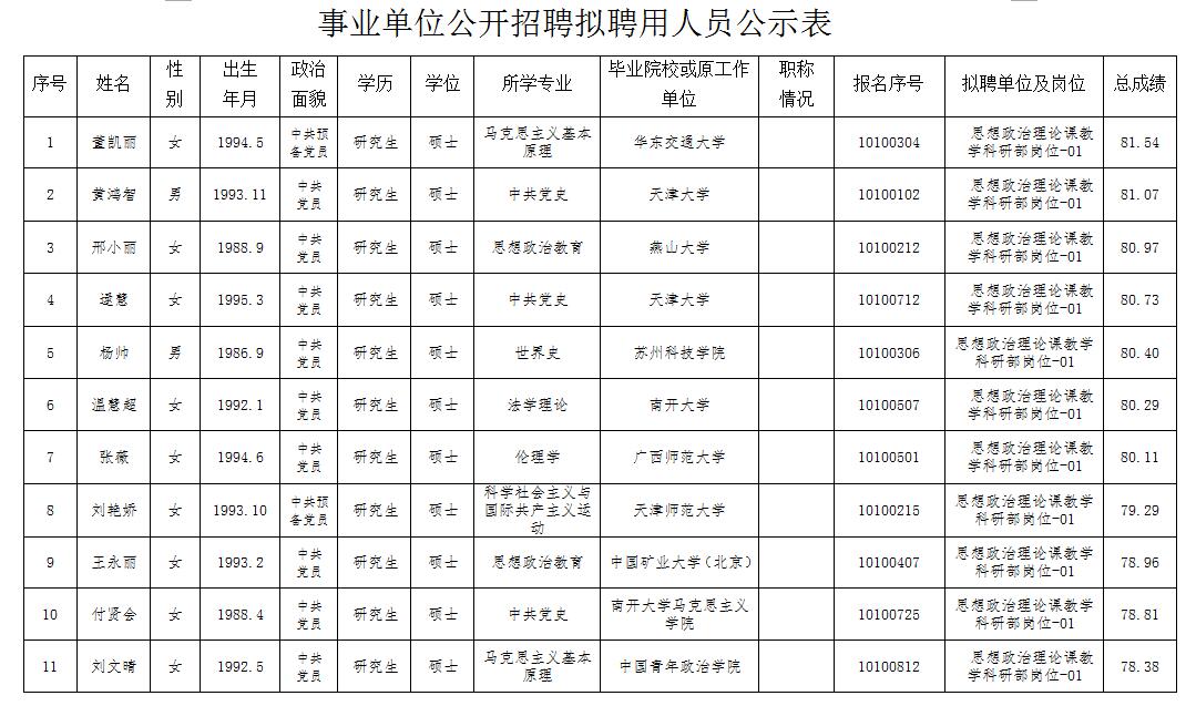 附件:事业单位公开招聘拟聘用人员公示表