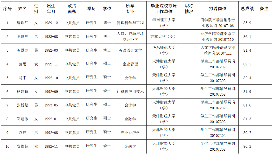 - 天津农学院2023年公开招聘硕士管理岗位拟聘用人员公示
