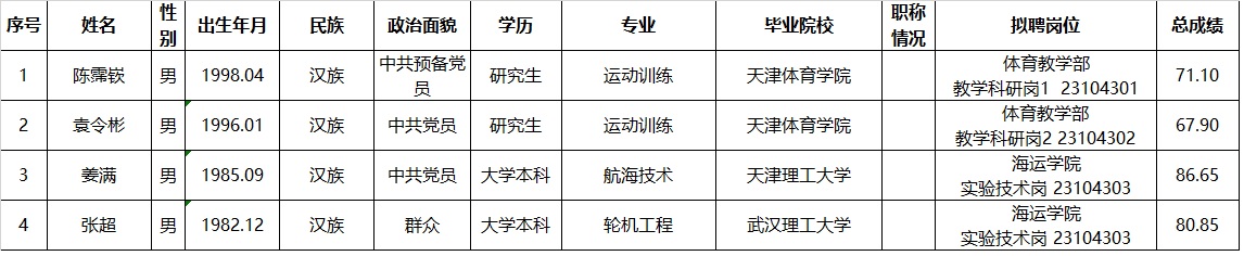 天津理工大学2023年公开招聘(硕士教师及其他专业技术岗)拟聘人员公示
