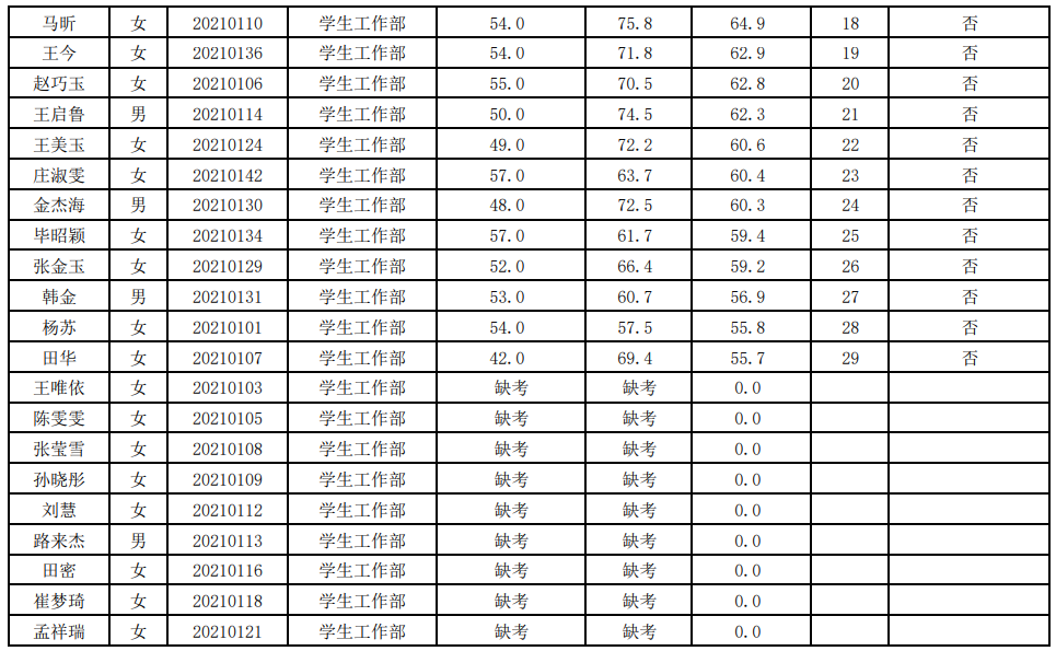 天津财经大学2020年第二批公开招聘硕士等人员笔试成绩单