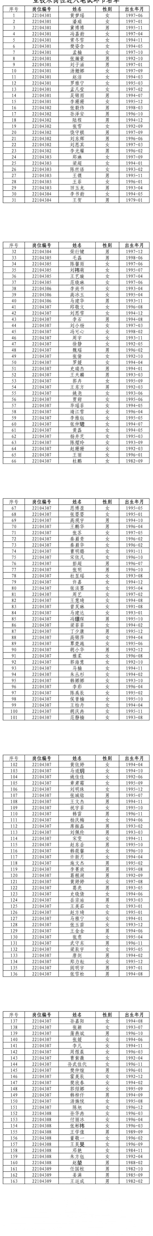 2022年公开招聘硕士教师或其他专业技术岗位进入笔试环节名单