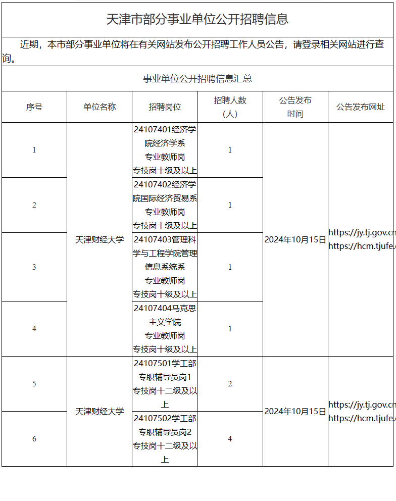- 天津市部分事业单位公开招聘信息10.12