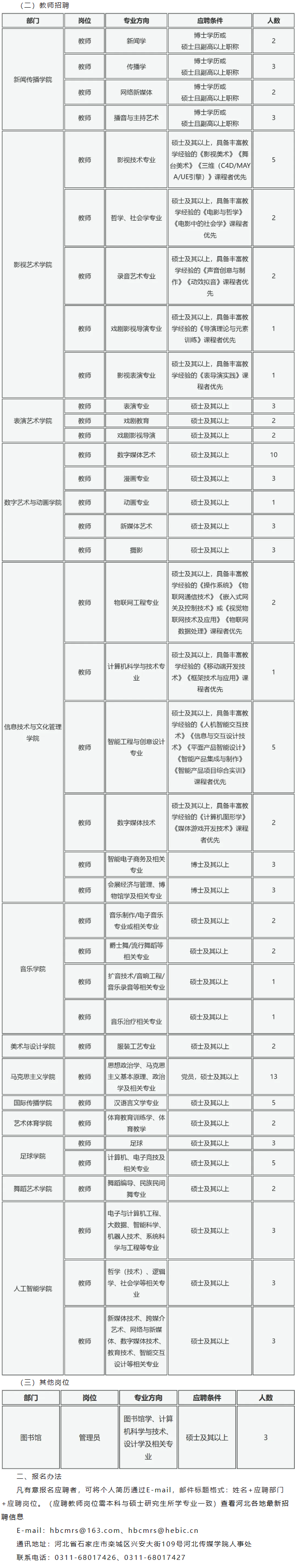 河北传媒学院2024-2025学年招聘130人计划