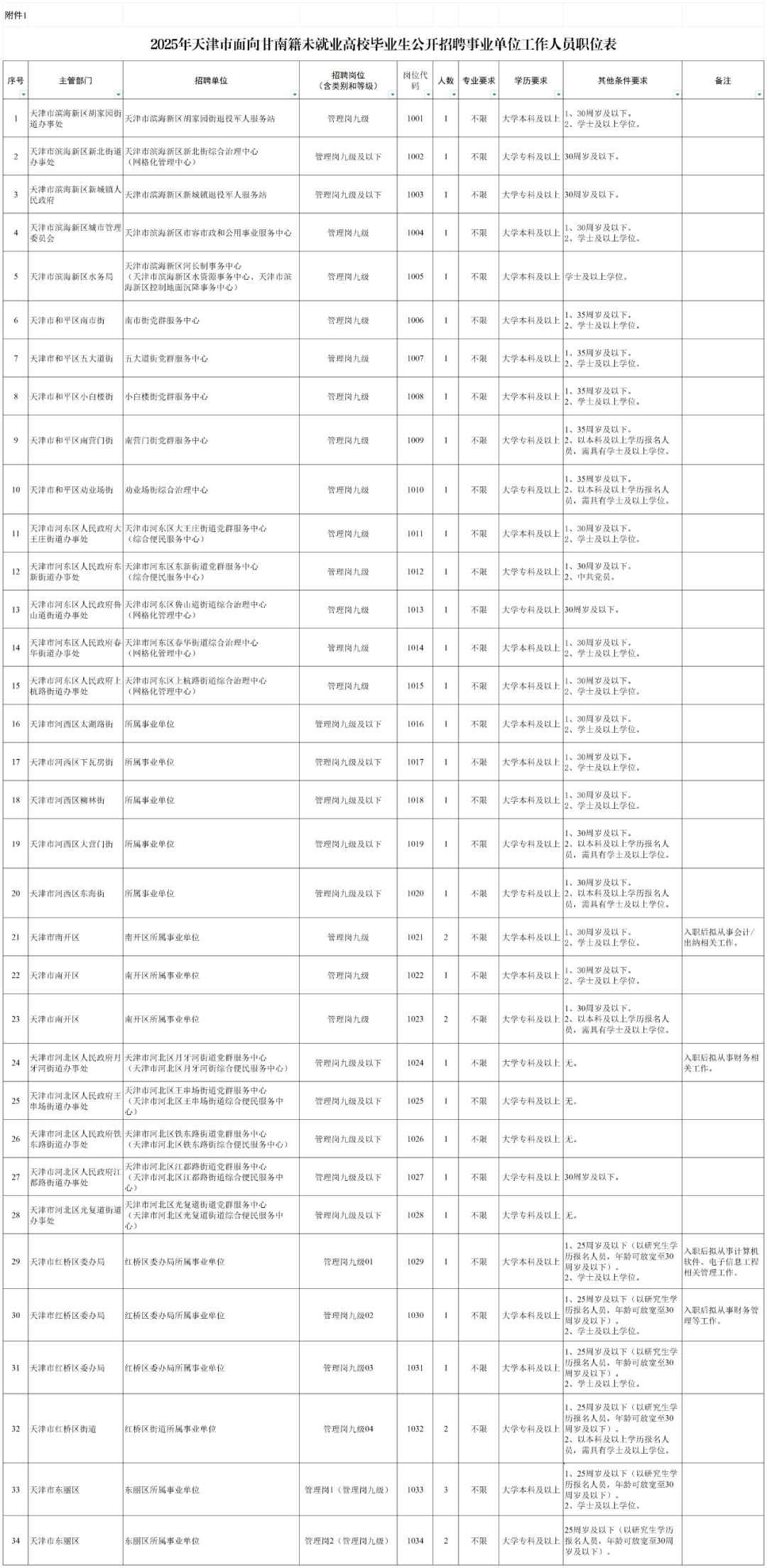 1.《2025年天津市面向甘南籍未就业高校毕业生公开招聘事业单位工作人员职位表》