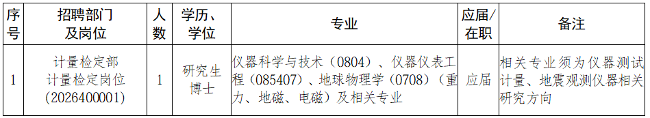 中国地震局第一监测中心2026年度第二批次公开招聘公告