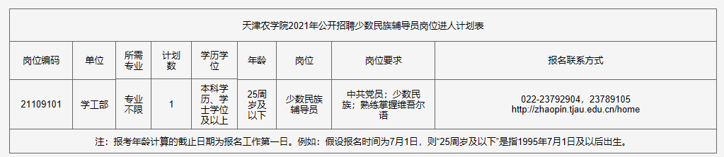 天津农学院2021年公开招聘专职少数民族辅导员岗位实施方案