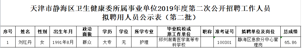 天津市静海区卫生健康委所属事业单位2019年度第二次公开招聘工作人员 拟聘用人员公示(第二批)