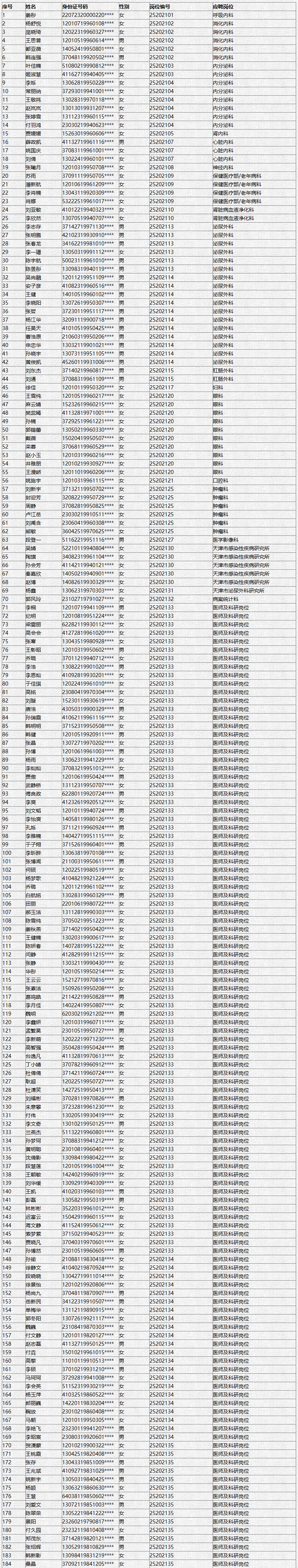 天津医科大学第二医院2025年第一批公开招聘通过资格初审人员名单