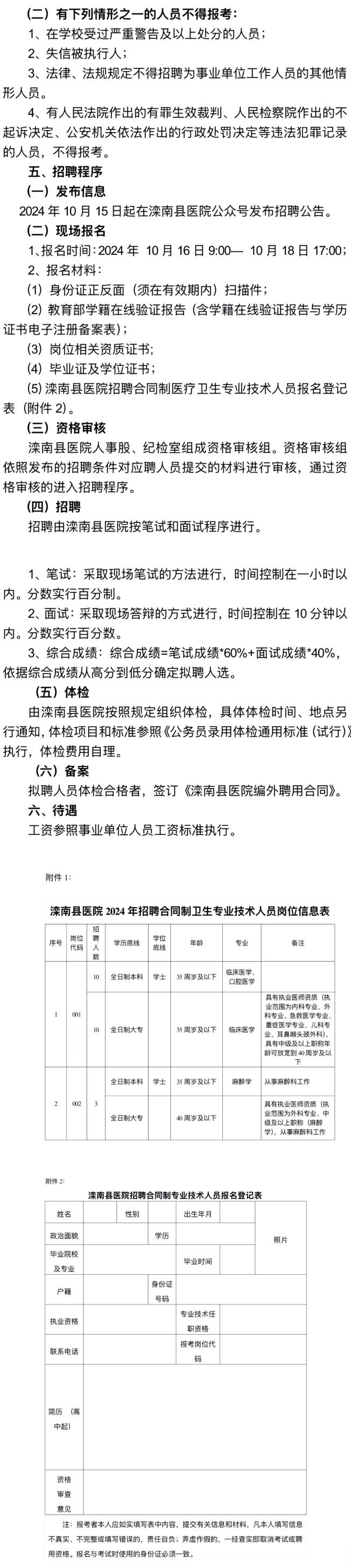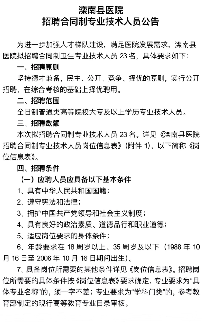 唐山市滦南县医院公开招聘23名工作人员公告