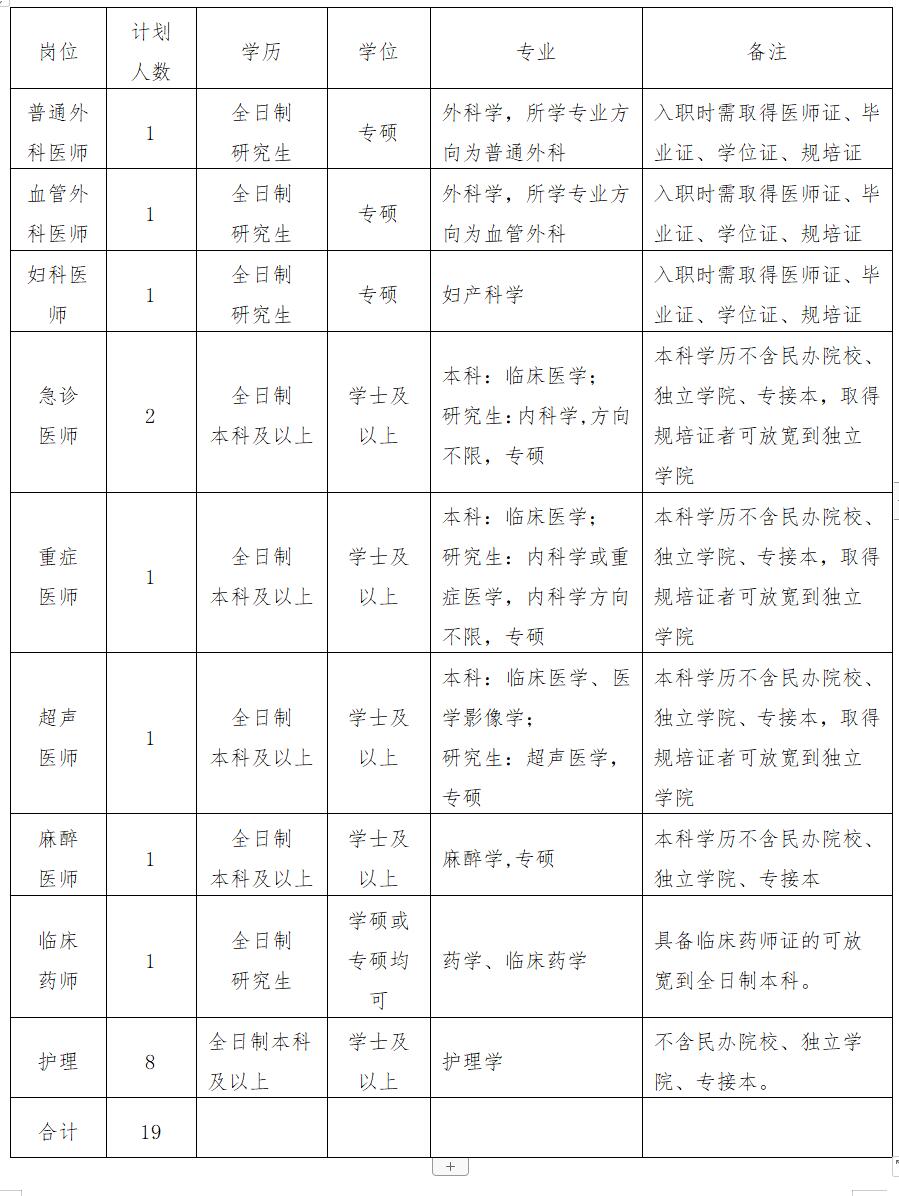1、全日制本科及以上学历,不含民办院校、专接本、独立学院,2020年以前毕业的,对规培证不做具体要求,2020年及以后毕业的,需具备规培证,且学历可放宽到独立学院层次;