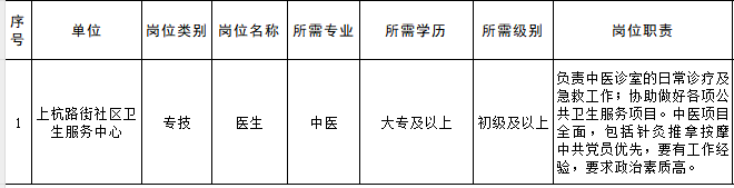 河东区上杭路街社区卫生服务中心招聘派遣制工作人员公告