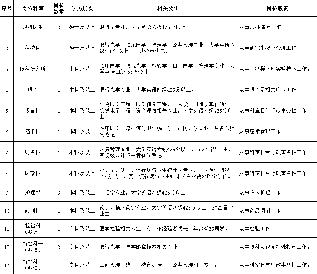 天津医科大学眼科医院2022年第一批自主招聘启事