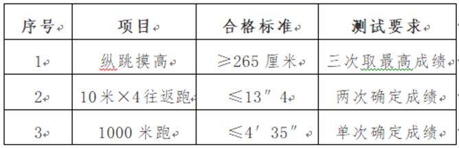 在规定集合时间内未进场点录人员记为缺考,不得参加资格复审与体能测试;弄虚作假者,一经发现,取消考试资格。体能测试采取单项淘汰方式进行,凡一项不达标的视为体能测试不合格。体能测试成绩将于测试当日进行公布,并由考生签字确认。